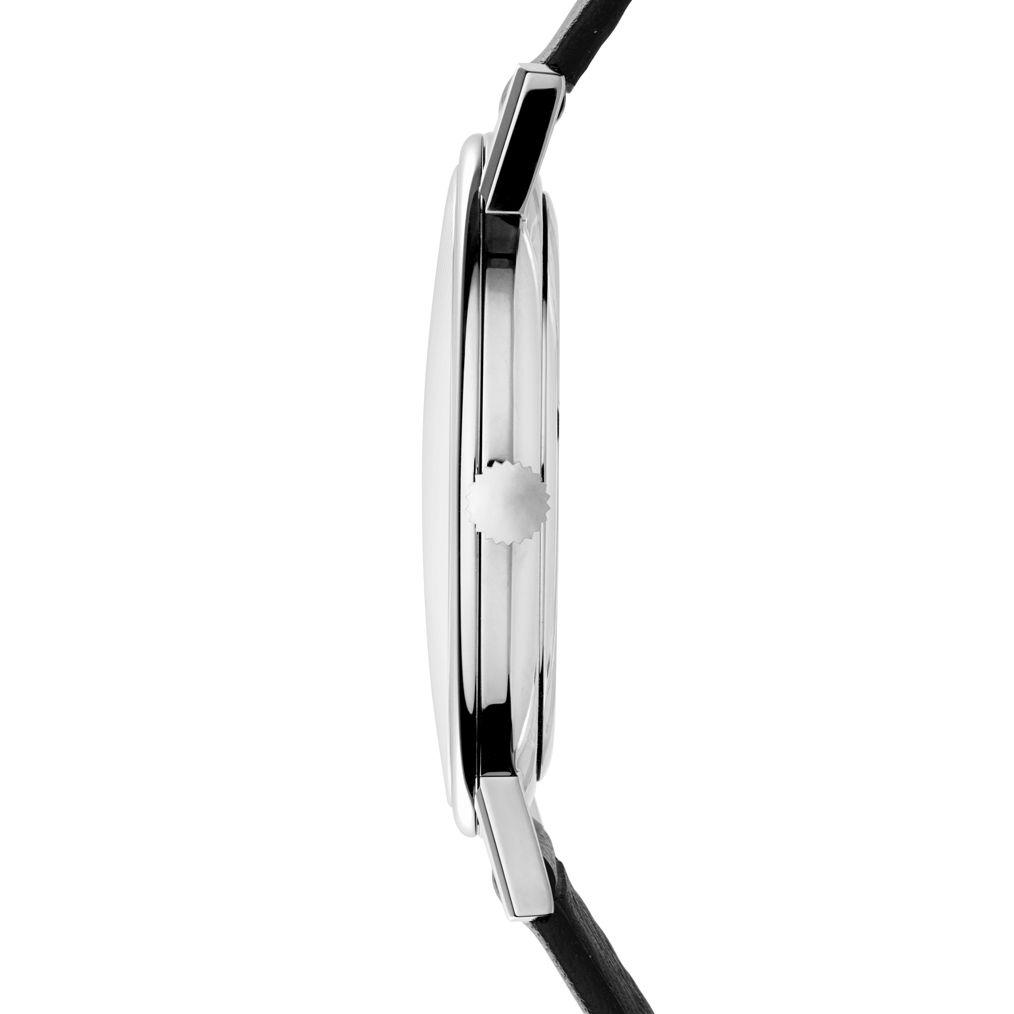 The discrete and prize-winning Classic designed by Ole Mathiesen in 1962. In stainless steel with ultra-thin Swiss quartz movement, blue sunburn dial with line index, scratchproof convex sapphire crystal and blue leather strap.