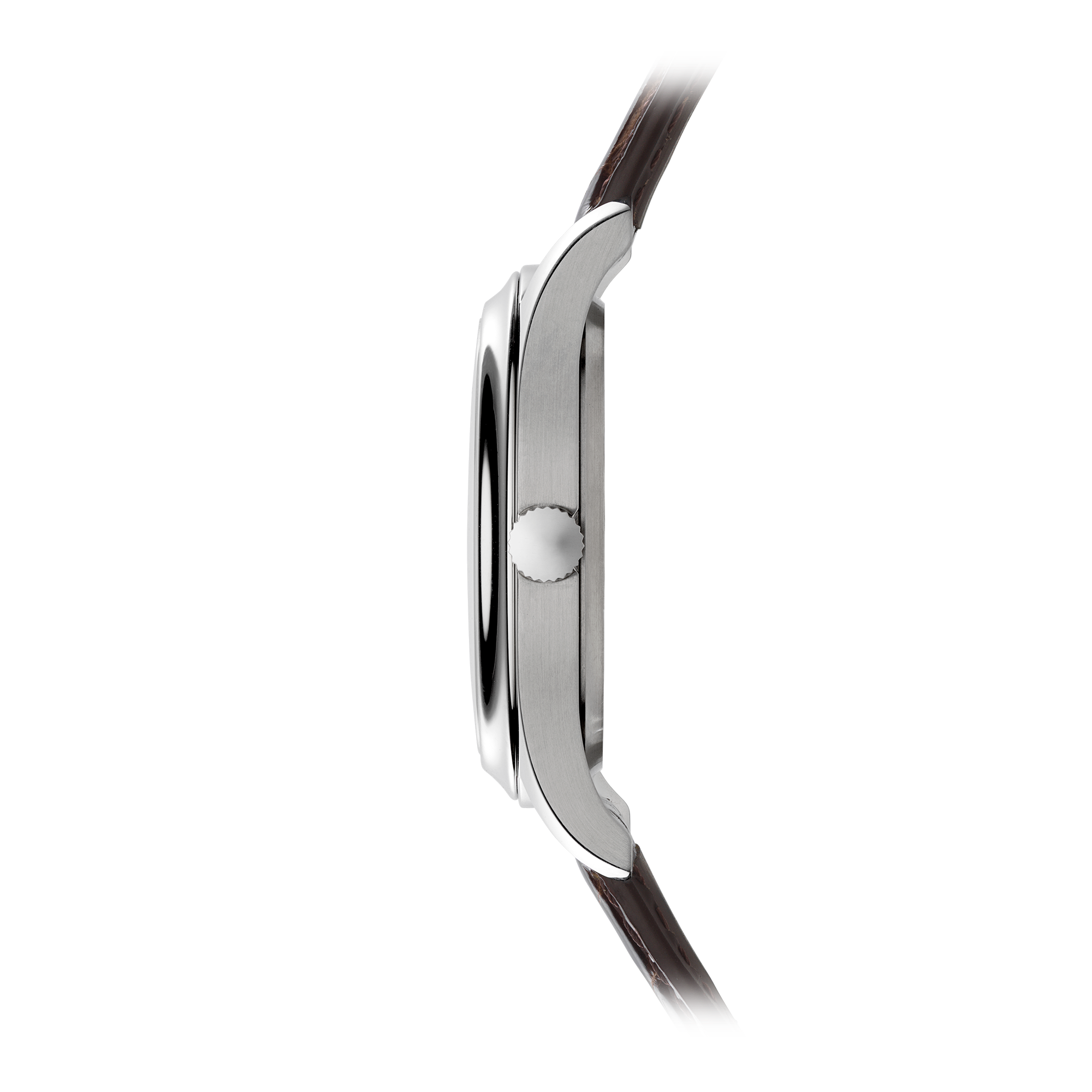 A tribute to the Ole Mathiesen heritage which dates back to 1919. In stainless steel with Swiss quartz movement, grey guilloche dial with arrow index, scratchproof convex sapphire crystal and steel bracelet.